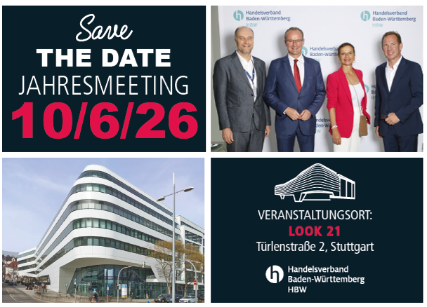 Am 10. Juni 2026 kommt beim Jahresmeeting 2026 des Handelsverbands Baden-Württemberg die Branche zusammen.