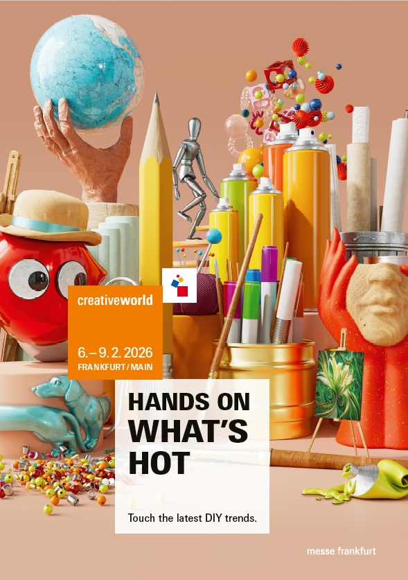 Die Creativeworld ist die weltweit wichtigste Fachmesse für die internationale Hobby-, Bastel- und Künstlerbedarfsbranche und lädt jährlich zum Ordnern, Netzwerken und Kreativwerden ein. Im Jahr 2023 präsentierten 249 Aussteller aus 36 Ländern ihre Innovationen in den Bereichen Papier- und Schreibaren, Grafik- und Künstlerbedarf, Handarbeit und textiles Gestalten sowie Graffiti und Street Art. Die dynamische Fachmesse ist ein Wegweiser für neue Techniken und kreative Trends von morgen und rückt gesellschaftliche Metathemen wie Nachhaltigkeit in den Fokus.